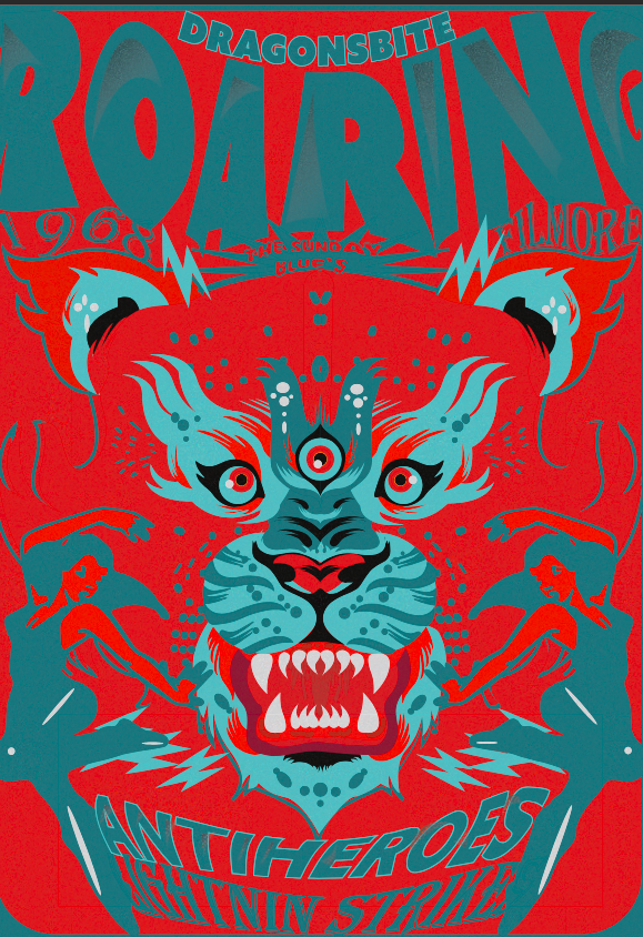 Opdracht: voor deze opdracht bedacht je een poster voor een niet bestaande band, op de poster Mochten er ongeveer 5 verschillende namen komen te staan. het doel van deze opdracht was om met verschillende warp, pentool en spiegel effecten in illustrator te werken.