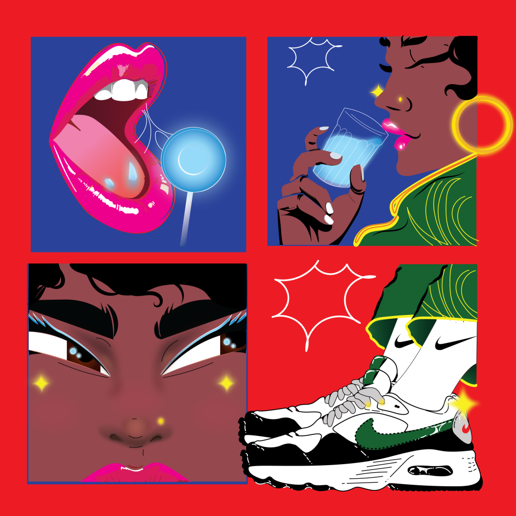 Ik heb ervoor gekozen om te werken met Photoshop en Illustrator. Mijn inspiratie haalde ik uit de grafische illustraties van MTV en uit bewerkte magazines. Daarnaast liet ik mij inspireren door het werk van de artiest Kayla Mahaffey. in illustrator heb ik het meest gewerkt met de pen en pensil tools en de shapetools. Hierbij heb ik ook Photoshop gebruikt voor het maskeren van de achtergrond en de voor de textuur heb ik ruis en kleur halftoon gebruikt in apparten lagen