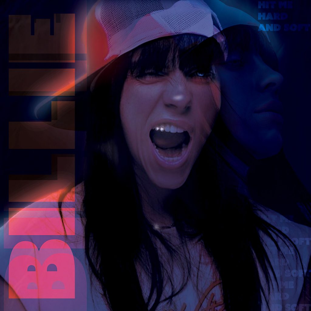 Billie Eilish: deze opdracht heb ik uit mij zelf gemaakt in  PS. Hierbij heb ik veel gewerkt met de blending mode en  volle kleur lagen