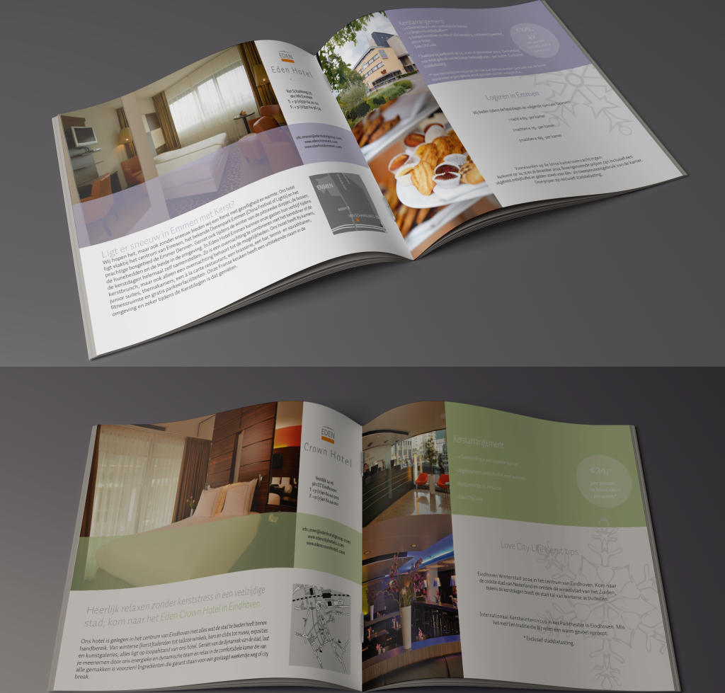 Voor de brochure kreeg je een halfafgemaakt InDesign-bestand waarbij je twee nieuwe spreads moest maken en alle documentfouten moest corrigeren met behulp van de preflight-instellingen. Deze twee nieuwe spreads moesten dezelfde huisstijl krijgen als het reeds aangeleverde bestand. Daarnaast moest je het hert op de voorkant aanpassen, zodat er zilverfolie op gedrukt kon worden.